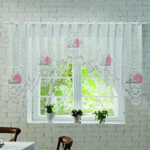 Cortina bando renda para cozinha 300x100 cascata hora do chá - contém: 1 cortina cascata - tema: hora do chá - cor da renda: branca - composição: 100% poliéster - consumo de tecido: largura 3,00 m x altura 1,00 m - indicado para varões de até 2,00m largura - espessura 19mm ============================================================ Atenção: foto ilustrativa -a tonalidade da cor real pode variar da tonalidade da imagem digital na tela do computador/ celular. Os produtos são novos ou Será um prazer atendê-lo la , obrigada pela visita e boas compras Marca: Não Informado