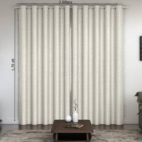 Tamanho: 1,70m alt x 2,00m larg. consumo 2,80m largura Cortina de cetim amassado, com forro em corta luz pvc, com ilhós. O corta luz protege a cortina contra o desgaste causado pelos raios solares. Impede a passagem da luminosidade. Impermeável, facilitando a limpeza. A beleza do cetim com a funcionalidade do corta luz - uma combinação perfeita. Cetim amassado 100% poliéster Forro 100% pvc