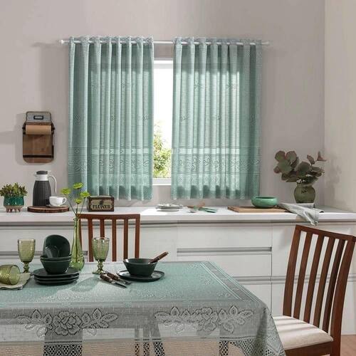 Cortina com toalha de mesa 4l quadrada pistache renda Com um excelente acabamento e design sofisticado, essa cortina é de beleza e bom gosto. É confeccionada com um material sintético que garante uma maior durabilidade e praticidade. - contém: 1 cortina em renda para varão dividida em 2 folhas - consumo de largura: 2,20 metros cortina completamente esticada - altura: 1,30 metros - indicado pra varão de 1,50m até 2,00m - composição: 100% poliéster - marca: interlar - obs: não acompanha varão - ela tem forro e contem duas partes - varão é vendido separadamente - ela é indicada pra varão de 1,50 a 2,50m para poder franzir A renda clássica é digna do luxo e beleza, foi elaborada especialmente para conferir sofisticação ao ambiente. O tecido rendado é leve e delicado, desenvolvido com uma técnica exclusiva de entrelaçamento dos fios, dando um toque charmoso e romântico a casa. Contém: 01 toalha de mesa renda clássica quadrada Tamanho:largura: 1,50 m Comprimento: 1,50 m Tecido: 100% poliéster Detalhes: - ideal para mesa de 4 lugares Marca: Não Informado