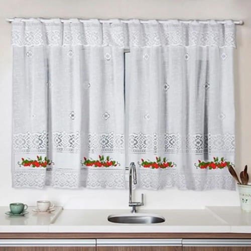 - Contém: 01 Cortina para cozinha em renda para varão com bandô