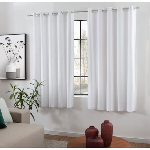 Linda Cortina para Sala ou Quarto Medidas Prontas: Largura 2,80m x Altura 1,20m Dividida em 2 partes de 1,40m x 1,20m Tecido: Voil Linho com Forro Microfibra Acabamento feito na Bainha Ilhós Cromado, indicado para Varão de 28mm Cortina ideal para Varão de até 2m