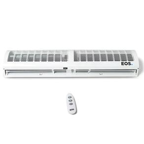 A Cortina de Ar EOS tem a função de separar a temperatura ambiente exterior da temperatura interior. Desenvolvido especialmente para áreas de comércio que são climatizadas, mas precisam manter as portas abertas, fornecendo uma maior economia de energia ao mesmo tempo em que mantém o conforto térmico do local. A Cortina de Ar EOS é instalada sobre a porta, a uma distância de até 3 metros acima do piso, criando assim uma barreira de vento que garante uma isolação térmica, impedindo que o ar refrigerado escape. Além disso, a Cortina de Ar EOS evita a entrada de poeira, fumaça, insetos e outras partículas. A correta utilização das cortinas de ar EOS aumenta a vida útil do equipamento de refrigeração (como ar condicionado e câmaras frigoríficas) gerando uma economia elétrica de até 35%. Seu controle remoto facilita a programação e alteração de velocidade e ligar e desligar o produto, mesmo se ele for instalado em grandes alturas ou em locais inacessíveis.