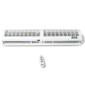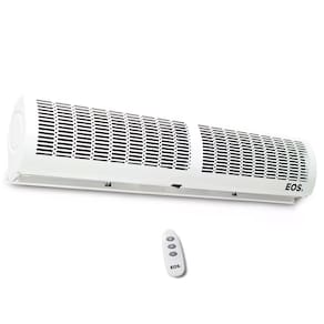 A Cortina de Ar EOS tem a função de separar a temperatura ambiente exterior da temperatura interior. Desenvolvido especialmente para áreas de comércio que são climatizadas, mas precisam manter as portas abertas, fornecendo uma maior economia de energia ao mesmo tempo em que mantém o conforto térmico do local. A Cortina de Ar EOS é instalada sobre a porta, a uma distância de até 3 metros acima do piso, criando assim uma barreira de vento que garante uma isolação térmica, impedindo que o ar refrigerado escape. Além disso, a Cortina de Ar EOS evita a entrada de poeira, fumaça, insetos e outras partículas. A correta utilização das cortinas de ar EOS aumenta a vida útil do equipamento de refrigeração (como ar condicionado e câmaras frigoríficas) gerando uma economia elétrica de até 35%. Seu controle remoto facilita a programação e alteração de velocidade e ligar e desligar o produto, mesmo se ele for instalado em grandes alturas ou em locais inacessíveis.