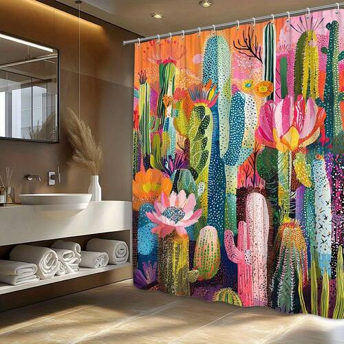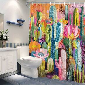 Tamanho da cortina de chuveiro: 180* 200 cm Peso: 410 g Material: poliéster Cor: igual à primeira foto Pacote: 1 x cortina de chuveiro Bold Cactus & Sunset Design — Apresenta uma paisagem deslumbrante do deserto com cactos coloridos e um lindo pôr do sol, adicionando um toque animado e vibrante à decoração do seu banheiro. Material de poliéster durável — Feito de tecido de poliéster de alta qualidade, oferecendo um design leve e resistente, perfeito para uso a longo prazo. Impermeável e fácil de manter — Projetado para ser à prova d'água, mantendo seu banheiro seco; lavável na máquina para facilitar a limpeza e manutenção. Ideal para todas as estações — Perfeita para uso durante todo o ano, esta cortina de chuveiro traz calor e cor ao seu banheiro, independentemente da estação. Decoração de banheiro simples e elegante — O design minimalista complementa qualquer banheiro, tornando-o uma ótima opção para espaços modernos e elegantes em residências ou banheiros de hóspedes.