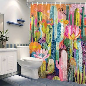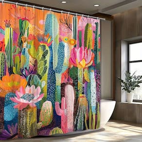Tamanho da cortina de chuveiro: 180* 200 cm Peso: 410 g Material: poliéster Cor: igual à primeira foto Pacote: 1 x cortina de chuveiro Bold Cactus & Sunset Design — Apresenta uma paisagem deslumbrante do deserto com cactos coloridos e um lindo pôr do sol, adicionando um toque animado e vibrante à decoração do seu banheiro. Material de poliéster durável — Feito de tecido de poliéster de alta qualidade, oferecendo um design leve e resistente, perfeito para uso a longo prazo. Impermeável e fácil de manter — Projetado para ser à prova d'água, mantendo seu banheiro seco; lavável na máquina para facilitar a limpeza e manutenção. Ideal para todas as estações — Perfeita para uso durante todo o ano, esta cortina de chuveiro traz calor e cor ao seu banheiro, independentemente da estação. Decoração de banheiro simples e elegante — O design minimalista complementa qualquer banheiro, tornando-o uma ótima opção para espaços modernos e elegantes em residências ou banheiros de hóspedes.