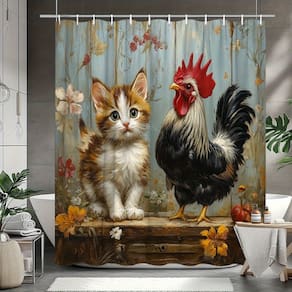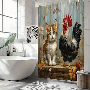Tamanho da cortina de chuveiro: 180* 200 cm Peso: 410 g Material: poliéster Cor: igual à primeira foto Pacote: 1 x cortina de chuveiro Esta cortina de chuveiro vibrante apresenta uma bela ilustração de um gatinho curioso e um galo orgulhoso cercado por flores coloridas, adicionando um toque extravagante à decoração do seu banheiro. Feita de poliéster durável, a cortina é à prova d'água, resistente ao mofo e fácil de limpar, proporcionando estilo e funcionalidade ao seu banheiro. Perfeita para amantes de animais, esta cortina combina charme divertido com um toque da natureza, tornando-a ideal para um design de banheiro divertido e fresco. Medindo 180 x 200 cm, ele se encaixa na maioria das banheiras e áreas de chuveiro padrão, oferecendo cobertura total para melhorar a estética do seu banheiro. O design bonito e de alta qualidade adiciona uma atmosfera artística e encantadora ao seu banheiro, tornando-o um complemento perfeito para residências e banheiros de hóspedes.