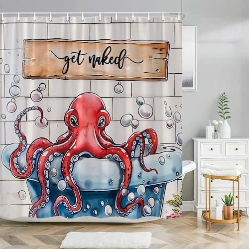 Tamanho da cortina de chuveiro: 180* 200 cm Peso: 410 g Material: poliéster Cor: igual à primeira foto Pacote: 1 x cortina de chuveiro Esta cortina de chuveiro peculiar apresenta um polvo de desenho animado descansando em uma banheira, cercado por bolhas divertidas, trazendo humor e charme à decoração do seu banheiro. Feita de poliéster durável, esta cortina de chuveiro à prova d'água é fácil de limpar e projetada para suportar o uso diário, garantindo qualidade duradoura e cores vibrantes. O design fofo do polvo em tons vibrantes de vermelho adiciona um toque divertido e extravagante ao seu banheiro, perfeito para criar uma atmosfera alegre e alegre. Medindo 180x200 cm, esta cortina se encaixa na maioria dos tamanhos padrão de chuveiros ou banheiras, oferecendo um design exclusivo e atraente para qualquer banheiro. Ideal para banheiros infantis ou para qualquer pessoa com senso de humor, essa cortina de chuveiro é uma maneira divertida e criativa de refrescar seu banheiro com um design inspirado em animais e com tema oceânico.
