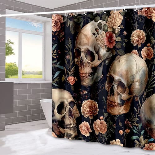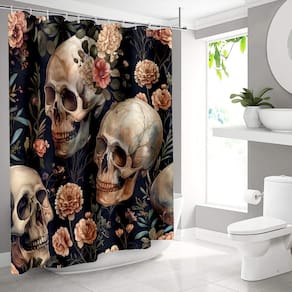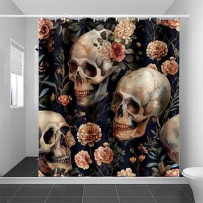 Tamanho da cortina de chuveiro: 180* 180 cm Peso: 400 g Material: poliéster Cor: igual à primeira foto Embalagem: 1 x cortina de chuveiro Design floral e de caveira exclusivo: apresenta um design gótico deslumbrante com grandes caveiras cercadas por lindas flores, oferecendo um contraste impressionante de elementos escuros e vibrantes. Tecido de poliéster premium: feito de tecido de poliéster resistente à água de alta qualidade, proporcionando durabilidade e uso duradouro para as necessidades diárias do banheiro. Perfeito para temas góticos e elegantes: ideal para banheiros góticos, escuros ou com temas exclusivos, adicionando um toque de elegância com um design arrojado e criativo. Fácil instalação: vem com 12 ganchos para uma configuração rápida e fácil, facilitando a adição de um toque dramático à decoração do banheiro. Impermeável e resistente ao mofo: projetado para resistir à água e ao mofo, mantendo seu banheiro com aparência fresca e elegante, protegendo contra danos.