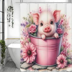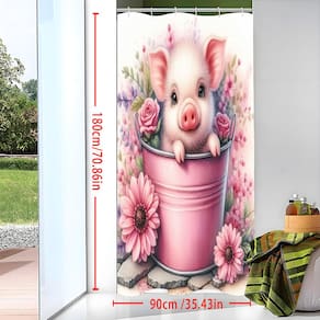 Tamanho da cortina de chuveiro: 90* 180 cm Peso: 210 g Material: poliéster Cor: pigmento Embalagem: 1 x cortina de chuveiroAdorable Pig & Floral Illustration — Apresenta um charmoso porco rosa sentado em um balde cercado por flores pastel suaves, adicionando um toque divertido e reconfortante à decoração moderna do banheiro. Tecido de poliéster durável — Feito de poliéster leve e resistente que oferece um tecido suave, qualidade de impressão digital nítida e durabilidade diária. Impermeável e de secagem rápida — A superfície repelente à umidade ajuda a bloquear respingos e oferece um ambiente de chuveiro mais limpo e seco, ideal para banheiros pequenos ou espaços de aluguel. Instalação simples — Inclui 12 ganchos compatíveis com a maioria dos varões de chuveiro padrão, garantindo uma configuração rápida e uma suspensão segura sem ferramentas adicionais. Cuidado lavável à máquina — Fácil de manter com lavagem suave na máquina, ajudando a preservar os tons de rosa vívidos e os detalhes florais ao longo do tempo.