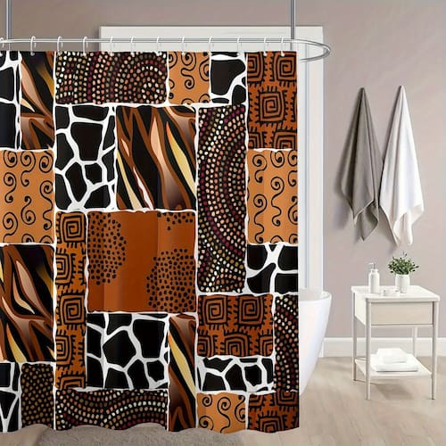 Tamanho da cortina de chuveiro: 180* 200 cm Peso: 410 g Material: poliéster Cor: igual à primeira foto Pacote: 1 x cortina de chuveiro Design vibrante de retalhos tribal: apresenta uma mistura ousada de formas geométricas, padrões inspirados em animais e tons quentes de terra para criar um ponto focal exclusivo e artístico no banheiro. Tecido de poliéster durável: feito com poliéster de alta qualidade que oferece textura suave, impressão em cores vivas e forte resistência ao desbotamento e ao desgaste. Impermeável e de secagem rápida: repele eficazmente a umidade enquanto seca rapidamente, ajudando a manter seu banheiro limpo e reduzindo a umidade. Cobertura generosa de 180 × 200 cm: oferece total privacidade e se encaixa na maioria dos chuveiros e banheiras padrão, aprimorando a função e o apelo decorativo. Fácil instalação com 12 ganchos: Inclui orifícios de gancho reforçados e ganchos de suspensão resistentes para configuração rápida e uso diário estável.