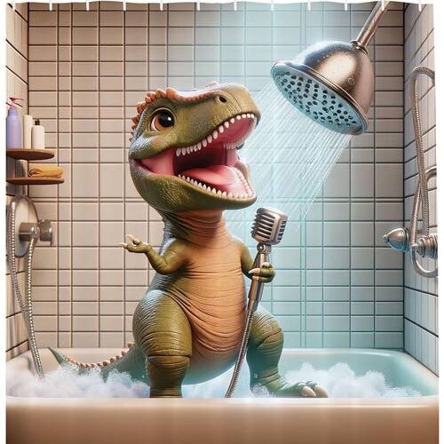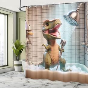 Tamanho da cortina de chuveiro: 180* 200 cm Peso: 410 g Material: poliéster Cor: igual à primeira foto Pacote: 1 x cortina de chuveiro• Material durável de poliéster: feito de poliéster de alta qualidade que cai suavemente, resiste às rugas e mantém cores impressas brilhantes para uso diário a longo prazo. • Design divertido de dinossauro de desenho animado: apresenta um divertido T-Rex cantando com um microfone embaixo do chuveiro, criando uma atmosfera divertida e animada, ideal para a família banheiros. • Superfície impermeável e de secagem rápida: a cortina repele eficazmente a umidade, ajudando a manter o piso do banheiro seco e proporcionando um ambiente limpo e fresco. • Tamanho grande de 180 × 200 cm: oferece cobertura generosa para a maioria das banheiras ou chuveiros, aumentando a privacidade e adicionando um apelo decorativo. • Fácil instalação: vem com orifícios superiores reforçados para pendurar suavemente usando ganchos padrão, tornando as atualizações do banheiro simples e rápidas.