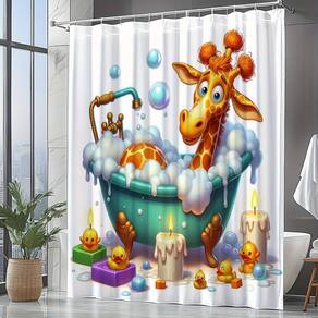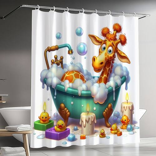 Tamanho da cortina de chuveiro: 180* 200 cm Peso: 410 g Material: poliéster Cor: igual à primeira foto Pacote: 1 x cortina de chuveiro Design divertido de girafa e pato: esta encantadora cortina de chuveiro apresenta uma girafa fofa curtindo um banho de espuma cercada por patos de borracha e velas, criando uma atmosfera divertida e extravagante para seu banheiro. Poliéster impermeável durável: feita de poliéster de alta qualidade, esta cortina de chuveiro foi projetada para resistir a respingos de água e ajuda a manter seu banheiro seco e limpo, além de adicionar uma decoração divertida. Fácil de manter: lavável à máquina para facilitar o cuidado, garantindo que seu banheiro sempre tenha uma aparência fresca e divertida com o mínimo de esforço. Conjunto de banheiro completo: inclui 12 ganchos para facilitar a instalação, simplificando a atualização da decoração do banheiro em pouco tempo. Perfeita para crianças e banheiros familiares: ideal para criar uma atmosfera alegre, esta divertida cortina com tema de animais é perfeita para banheiros familiares ou espaços infantis.