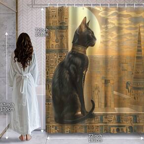 Tamanho da cortina de chuveiro: 180* 180 cm Peso: 380 g Material: poliéster Cor: igual à primeira foto Pacote: 1 x cortina de chuveiro Esta deslumbrante cortina de chuveiro apresenta uma imagem detalhada de um gato preto em um cenário de arquitetura egípcia antiga, criando uma atmosfera única e artística para a decoração do seu banheiro. Feita de tecido de poliéster durável e resistente à água, esta cortina de chuveiro é lavável na máquina, garantindo fácil manutenção e uso duradouro, mantendo seu banheiro seco. Com seu tamanho de 180x180cm, ele se encaixa na maioria das banheiras e chuveiros padrão, oferecendo cobertura total e adicionando um toque de elegância e mistério ao seu banheiro. O design vibrante captura a essência do antigo Egito, com hieróglifos e monumentos icônicos, tornando-o perfeito para aqueles que amam a cultura e querem adicionar um toque sofisticado ao banheiro. Esta cortina de chuveiro vem com ganchos para facilitar a instalação e uma configuração descomplicada, tornando-a o complemento ideal para qualquer banheiro moderno ou temático, seja em casa ou em um banheiro de hóspedes.