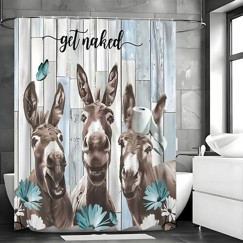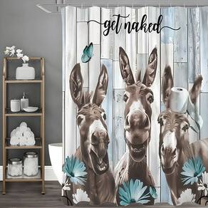 Tamanho da cortina de chuveiro: 180* 200 cm Peso: 410 g Material: poliéster Cor: burro Embalagem: 1 x cortina de chuveiro Ilustração humorística do burro: esta cortina de chuveiro apresenta três burros expressivos com detalhes faciais divertidos, adicionando um toque animado e divertido à decoração do banheiro. Fundo de madeira rústica: o design de tábuas de madeira envelhecida combinado com flores azul-petróleo suaves cria uma aparência inspirada em uma fazenda, ideal para banheiros modernos em estilo campestre. Tecido de poliéster durável: feito de material de poliéster forte que resiste ao desbotamento, ao rasgo e à umidade, garantindo o uso diário confiável e a vibração duradoura das cores. Impermeável e fácil de manter: projetada para manter a água dentro da área do chuveiro, a cortina seca rapidamente e pode ser lavada na máquina para facilitar a limpeza. Instalação simples: inclui orifícios superiores reforçados compatíveis com varões de chuveiro padrão e oferece cobertura total de 180 × 200 cm para privacidade e proteção contra respingos.