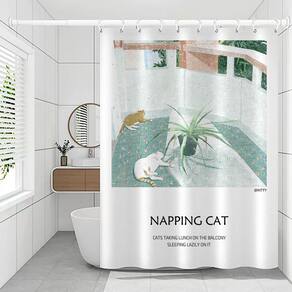 Tamanho da cortina de chuveiro: 180* 200 cm Peso: 500 g Material: poliéster Cor: igual à primeira foto Embalagem: 1 x cortina de chuveiro Tecido impermeável macio — Feito de poliéster durável com uma superfície lisa à prova d'água que ajuda a manter o piso do banheiro seco, oferecendo uso duradouro. Ilustração artística de gatos — apresenta uma cena relaxante de varanda com gatos cochilando, trazendo uma estética calma, aconchegante e moderna ao seu banheiro. Fácil instalação — vem com 12 ganchos de plástico e orifícios superiores reforçados para pendurar rapidamente na maioria dos varões de chuveiro padrão. Privacidade e proteção contra luz — O tecido espesso ajuda a proporcionar melhor privacidade, ao mesmo tempo que permite a filtragem da luz suave para um ambiente de banho confortável. Lavável na máquina — Simples de manter; basta jogá-lo na máquina de lavar para manter a cortina limpa e vibrante ao longo do tempo.