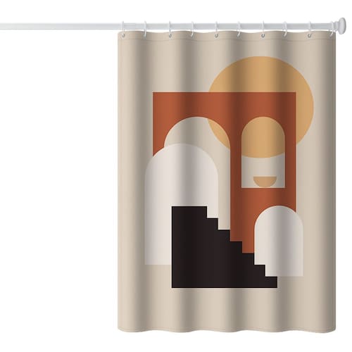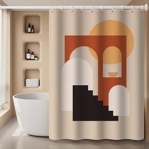 Tamanho da cortina de chuveiro: 180* 200 cm Peso: 650 g Material: poliéster Cor: igual à primeira foto Pacote: 1 x cortina de chuveiro • Arte abstrata moderna — Apresenta um arco geométrico, degraus e composição solar em tons quentes de terracota e bege, trazendo uma estética limpa e artística aos banheiros contemporâneos. • Tecido de poliéster impermeável — Feito de material de poliéster espessado que resiste à umidade, seca rapidamente e mantém sua forma para uso duradouro. • Construção suave e durável — A bainha superior reforçada com orifícios de gancho resistentes à ferrugem garante facilidade de pendurar e evita rasgos durante o uso diário. • Privacidade e proteção contra luz — O tecido opaco ajuda a criar um espaço de banho privativo, mantendo um ambiente de luz suave e equilibrado. • Fácil de limpar e instalar — A cortina lavável à máquina vem com 12 ganchos resistentes, tornando a instalação rápida e a manutenção simples em qualquer configuração de banheiro.