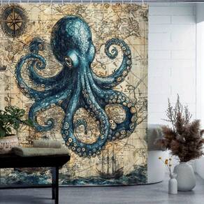Tamanho da cortina de chuveiro: 180* 200 cm Peso: 410 g Material: poliéster Cor: igual à primeira foto Pacote: 1 x cortina de chuveiro Esta impressionante cortina de chuveiro apresenta um design de mapa vintage com um polvo majestoso, criando uma atmosfera náutica única em seu banheiro com obras de arte detalhadas e cores vibrantes. Feita de tecido de poliéster de alta qualidade, a cortina é à prova d'água, resistente ao mofo e lavável na máquina, garantindo durabilidade e fácil manutenção para o uso diário. O tamanho de 180 x 200 cm se encaixa na maioria dos espaços de chuveiro padrão, tornando-o um complemento perfeito para banheiros, hotéis ou quartos com temas costeiros, adicionando personalidade e estilo a qualquer espaço. O conjunto inclui 12 ganchos para facilitar a instalação, e o tecido liso da cortina garante fácil suspensão e operação, perfeito para uma rápida atualização do banheiro. Ideal para amantes do oceano e para aqueles que apreciam designs artísticos exclusivos, esta cortina de chuveiro com tema de polvo é perfeita para adicionar um toque de personalidade a qualquer decoração de banheiro.