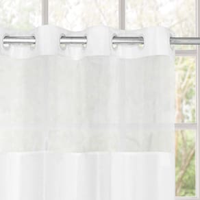 A cortina de chuveiro River Dream traz estilo e sofisticação novos ao seu banheiro. Não é necessário comprar anéis para cortinas de chuveiro e lidar com eles caindo da cortina. Ele permite que você pendure a cortina com facilidade e rapidez. Você nem precisa remover a haste do chuveiro. Porque o anel flexível embutido estala diretamente sobre ele. O Snap In Liner é muito fácil de tirar e limpar. Depois de usá-lo, você vai adorar! Uma janela transparente na parte superior permite a entrada de luz e permite que você veja para fora, mantendo a privacidade. O tratamento repelente à água pode repelir a água dentro da banheira. Preços incluídos: 1 x cortina de chuveiro e 1 x forro encaixável Medidas: cortina de chuveiro 71 “L x 74" H forro de encaixe 70 pés L x 54'H Cor: branco Material: poliéster Lavável à máquina