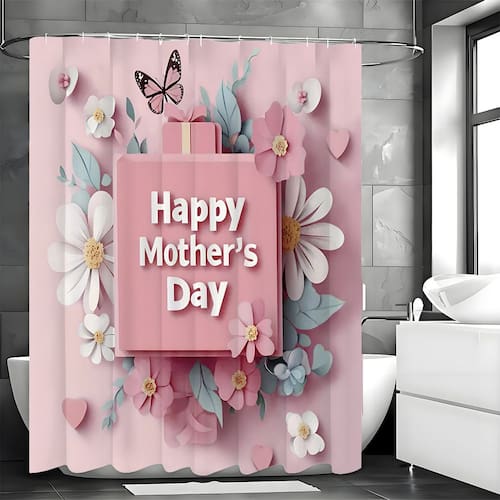 Tamanho da cortina de chuveiro: 180* 200 cm Peso: 410 g Material: poliéster Cor: igual à primeira foto Pacote: 1 x cortina de chuveiro• Tecido de poliéster durável: feito de poliéster macio e leve que seca rapidamente, resiste ao desbotamento e oferece desempenho duradouro no uso diário do banheiro. • Superfície repelente à água: o revestimento impermeável ajuda a evitar que o excesso de umidade chegue ao chão, mantendo a área do chuveiro mais limpa e confortável. • Superfície impermeável: o revestimento à prova d'água ajuda a evitar que o excesso de umidade chegue ao chão, mantendo a área do chuveiro mais limpa e confortável. • Superfície impermeável. • Superfície impermeável. Design de estilo: apresenta elementos florais em camadas, tons pastel suaves e um detalhe de borboleta em torno de um “Happy”. Mensagem de “Dia das Mães” para um ambiente acolhedor e inspirador. • Cobertura total generosa: com 180 × 200 cm, oferece ampla privacidade e é adequada para a maioria das banheiras e chuveiros padrão em residências, apartamentos ou dormitórios. • Fácil instalação: equipada com ilhós e ganchos reforçados para uma configuração rápida; a cortina se pendura suavemente e mantém sua forma para uma aparência limpa e moderna.