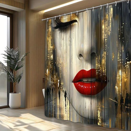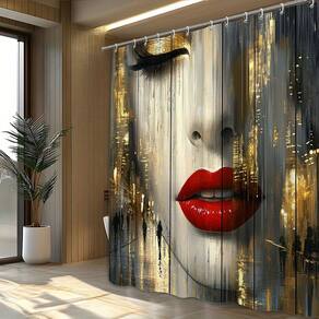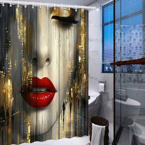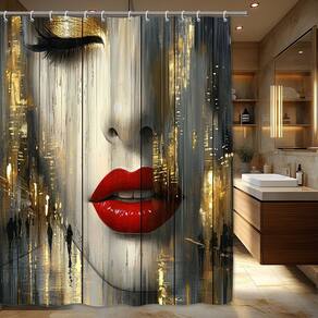 Tamanho da cortina de chuveiro: 180* 200 cm Peso: 410 g Material: poliéster Cor: igual à primeira foto Pacote: 1 x cortina de chuveiro • Tecido de poliéster premium: feito de poliéster durável e resistente ao desbotamento que é macio, seca rapidamente e funciona bem em ambientes úmidos de banheiro. • Impermeável e funcional: o tecido revestido ajuda a repelir a umidade, reduzir respingos e manter a área do chuveiro mais limpa no uso diário. • Impermeável e funcional: o tecido revestido ajuda a repelir a umidade, reduzir respingos e manter a área do chuveiro mais limpa no uso diário. • Impermeável e funcional: o tecido revestido ajuda a repelir a umidade, reduzir respingos e manter a área do chuveiro mais limpa no uso diário. • Impermeável e funcional: o tecido revestido ajuda a repelir a umidade rosto feminino abstrato com lábios vermelhos ousados e texturas douradas da cidade, criando um ponto focal dramático em estilo de galeria para decoração do seu banheiro. • Tamanho generoso de cobertura total: medindo 180 × 200 cm, a cortina se encaixa na maioria dos chuveiros e banheiras padrão, proporcionando ampla privacidade e impacto visual. • Fácil instalação e cuidado: vem com ilhós e ganchos reforçados para pendurar rapidamente; a cortina é fácil de limpar com um pano ou lavar na máquina, mantendo as cores vivas.