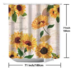 Tamanho da cortina de chuveiro: 180* 180 cm Peso: 400 g Material: poliéster Cor: igual à primeira foto Embalagem: 1 x cortina de chuveiro• Tecido de poliéster durável — Feito de poliéster de qualidade que é impermeável, de secagem rápida e resistente ao mofo, mantendo seu banheiro fresco e limpo. • Obra de arte vintage de girassol — apresenta padrões botânicos e de girassol brilhantes com fundo rústico em estilo cartão postal, criando uma aparência decorativa aconchegante e convidativa. • Completa. Tamanho da cobertura — mede 180 × 180 cm, oferecendo excelente proteção contra respingos e privacidade para a maioria dos chuveiros e banheiras padrão. • Fácil instalação — vem com 12 ganchos para pendurar de forma rápida e sem ferramentas na maioria dos varões de chuveiro; leve e resistente para o uso diário. • Melhora a decoração da casa — A estampa floral inspirada na natureza adiciona um estilo refrescante e alegre aos ambientes de banheiro de fazenda, modernos ou campestres.