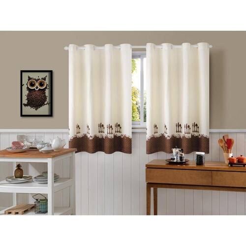 Cortina De Cozinha Em Tecido Linhão 3,00m x 1,20m Talheres Cortina Gourmet Ibitinga Decora