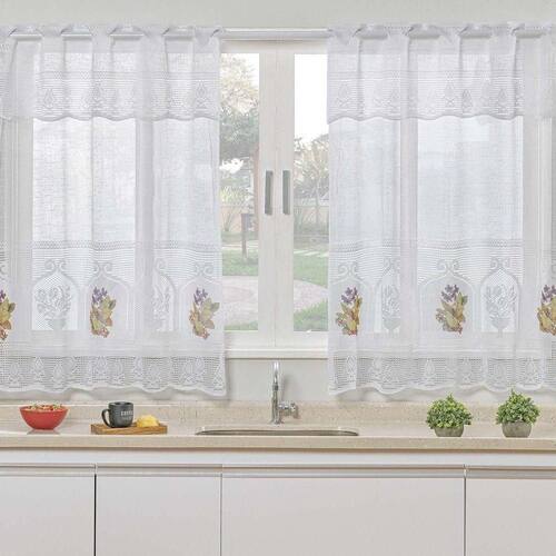 Cortina De Janela Flores Em Renda Com Bandô E Transfer 1,20m X 2,50m 100% Poliéster - Flores
