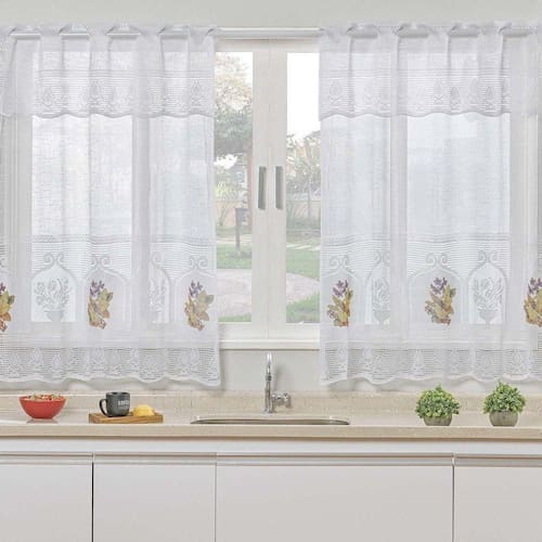 A Cortina de Janela Flores em Renda com Transfer une o charme tradicional da renda com a vivacidade das cores aplicadas em transfer. Com um design pensado para o coração da casa, ela acompanha bandô integrado, proporcionando um acabamento impecável e um visual alegre que transforma a iluminação da cozinha em um cenário acolhedor.