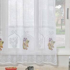 Cortina De Janela Flores Em Renda Com Bandô E Transfer 1,20m X 2,50m 100% Poliéster - Flores