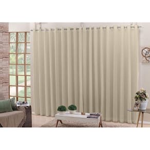 Cortina Blackout é ideal para controlar a claridade, bloquear a vista, embelezar a decoração do ambiente e manter a temperatura. Medidas Prontas: Largura 6,00m x Altura 2,50m Dividida em 2 partes de 3,00m x 2,50m Tecido: Voil com Forro Blackout / 100% Poliéster Cor: Pérola Bloqueia em torno de 80% da Luz Acabamento feito na Bainha Ilhós Cromado, indicado para Varão de 28mm Cortina ideal para Varão de até 3,5m Não acompanha o Varão Atenção: essa cortina não é em PVC, e sim Tecido 100% Poliéster Marca: Lm Detona
