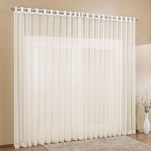 Cortina de Voil 4,00m x 2,80m com Ilhós Cromado para Varão Simples - Palha Conteúdo da Embalagem:01 Cortina para Varão Simples - 4,00m x 2,80mConsumo total na Largura 4,00 metros 02 partes de 2,00m x 2,80m Para um excelente franzimento indicamos varão de até 3 metros Composição:Tecido Voil 100% PoliésterA leveza e delicadeza de uma Cortina de Voil resultam em versatilidade e facilidade de uso, e sempre será uma excelente opção para decoração de qualquer ambiente. A Cortina é confeccionada em Voil com Ilhós Cromado - equilibrando luxo, conforto e estilo.