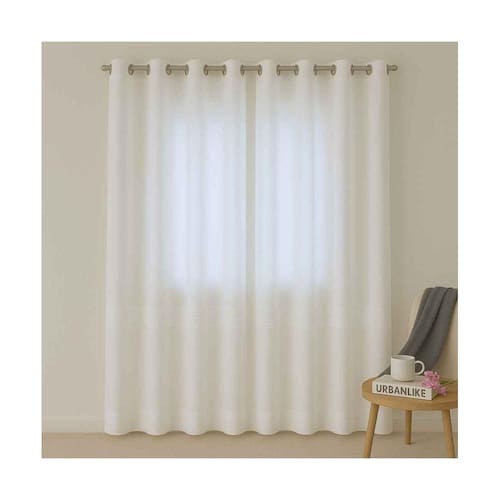 Praticidade e elegância: O design com ilhoses cromados facilita a instalação e oferece durabilidade, enquanto o caimento fluido cria um ambiente leve e sofisticado.