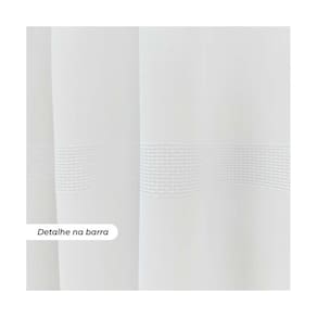 Detalhes sofisticados: Inclui ilhoses cromados, bainhas laterais de 2,00cm e barra inferior de 5,00cm, além de um barrado de 5cm, posicionado a 40cm da barra inferior, agregando um toque refinado à sua decoração.