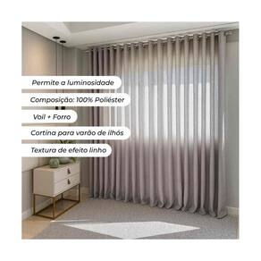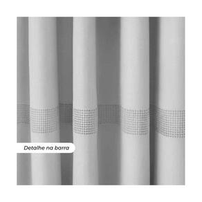Detalhes sofisticados: Inclui ilhoses cromados, bainhas laterais de 2,00cm e barra inferior de 5,00cm, além de um barrado de 5cm, posicionado a 40cm da barra inferior, agregando um toque refinado à sua decoração.
