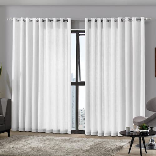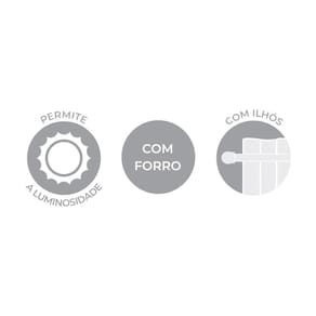 A Cortina Duplex Monaco é versátil e elegante! Confeccionada em poliéster, o modelo é composto por um voil decorativo com textura de linho e um corta luz em tecido que controla a luminosidade sem bloqueá-la totalmente, proporcionando conforto, privacidade e sofisticação para seu quarto ou sala. Conta com duas partes de 2,70m de largura e 2,50m de altura, com acabamento em bainha na lateral e na parte inferior em barra. Peça indicada para varão de 3,00m, contendo 36 ilhoses. Foto ilustrativa, não acompanha varão.