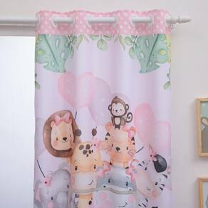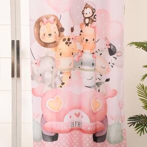 Cortina Estampada Infantil 200X150 Quarto Safari Rosa