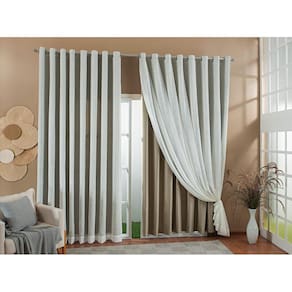 Contém na embalagem: 01 cortina com forro 5,00m largura x 2,80m altura -ilhós cromado em toda parte superior