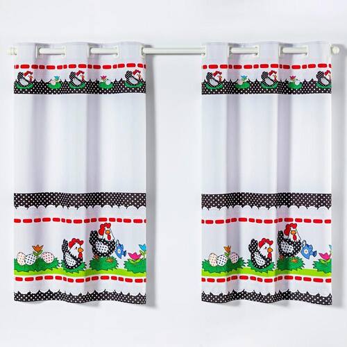 Contém na embalagem: 01 Cortina de cozinha estampada 2,00m largura x 1,30m altura