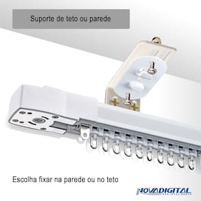 kit completo para Cortina Inteligente Wi-Fi até 4,2 Metros Imagine a sua cortina abrindo automaticamente logo ao amanhecer, ou então fechando ao início da tarde, sem que você precise se preocupar em ajustá-la manualmente. Agora isso é totalmente possível e com o controle total nas palmas de suas mãos. Automatize sua casa de maneira inteligente com a cortina inteligente da Nova Digital.Monitore e ajuste sua cortina de onde você estiver, diretamente do seu smartphone pelo App disponível para sistema Android ou iOS. Compatível com os Apps Smart Life, Tuya ou Nova Digital. Além disso, a cortina é totalmente compatível com Alexa da Amazon e Google Assistant para comando de voz. É possível a criação de cenas inteligentes para a cortina abrir ou fechar conforme pré configurado de modo automático. Automatize sua cortina de trilhos com nossa cortina inteligente, ele possuí motor, trilhos, correia e os rodízios compatível com diversos modelos de cortina e tamanhos, abra e feche sua cortina a hora e de onde quiser, programe horários de abertura e fechamento, apenas com um toque no smartphone ou comando de voz ela te obedecerá. Cortina Inteligente Wi-FiModelo:C-GM46Modelo do motor: GM46Material: AlumínioTensão de entrada: 90-240V ACFrequência: 50/60HzPotência: 20W/ 2.0NmWi-Fi: 2,4GHz IEEE 802.11 b/bg/nPeso Máximo suportado: 50KgVelocidade(RPM):100RPMAplicativo: NovaDigital/Smartlife Acompanha na embalagem:-Trilhos- Caixa do motor- Controle RF- Travas de engrenagem- Correia- Guias da cortina- Grampo de correia- Emendas- Tampões- Engrenagens do motor