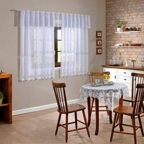 Cortina Interlar de Renda Classica para Cozinha Arabesco com Bando 220mx120m Branco