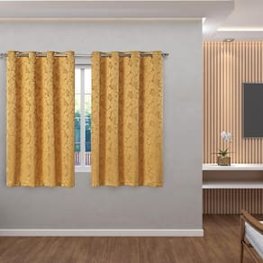 Contém: 01 Cortina 2,70 mts x 1,60 mts no total, sendo: 02 Partes de 1,35 mts x 1,60 mts com 16 ilhoses no total Indicada para varão de até 2,0 mts de 19 mm fino ou 28 mm grosso Varão não incluso