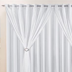 Para completar o visual, a Cortina Jéssica acompanha um par de abraçadeiras cromadas. Esses acessórios decorativos são ideais para segurar a cortina quando desejar deixar a luz natural entrar, além de adicionar um toque extra de estilo e charme à sua decoração.