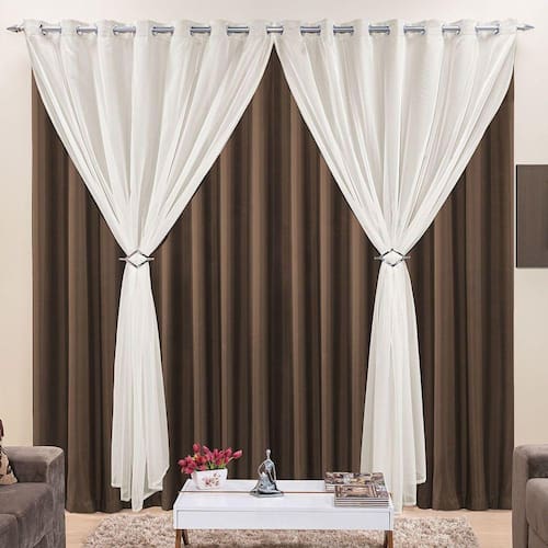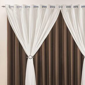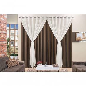 Cortina Jéssica 4 Metros Tabaco Tecido Microfibra Com Voal Clássica Sala Quarto