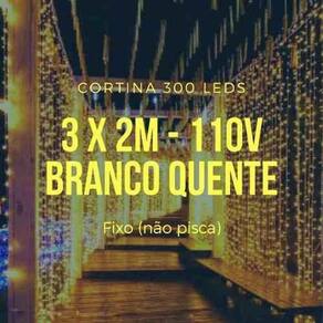 Cortina Led 3X2M 300 Leds Bco Quente Fixo Festa 110V 3Fw1