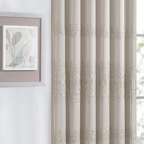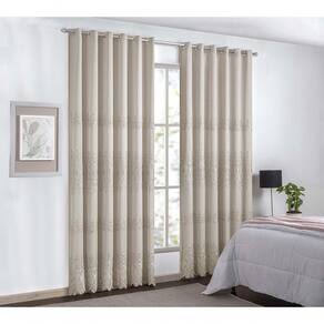 Cortina Liz Bordada Para Varão Simples 3,00m X 2,60m Com Forro 100% Poliéster - Bege