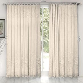 Cortina Marfim Renda com Forro Sala Roseiral 3,00x1,80 Alt Cortina Para Varão Renda Marfim com Forro apresenta uma cortina em estilo renda com uma linda estampa com tema de floral na cor branca com lindas florzinhas pequenas e delicadas criadas especialmente para embelezar a sua sala ou quarto.As flores do campo representam beleza. - Contém: 1 cortina em renda para varão com forro - Consumo: 3,00 metros de largura total do tecido medida da cortina completamente esticada - Altura: 1,80 metros - Composição : 100% poliéster - Indicado para varões entre 2,50 metros de largura - OBS: Não acompanha varão