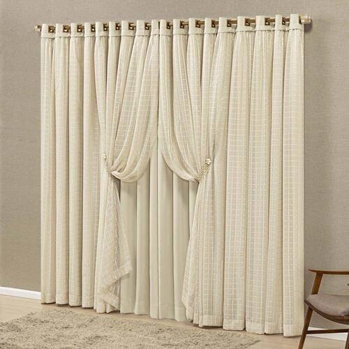 Contém na embalagem: 01 cortina de 3,00m largura franzida x 2,50m altura consumo total de tecido: 4,40m de largura