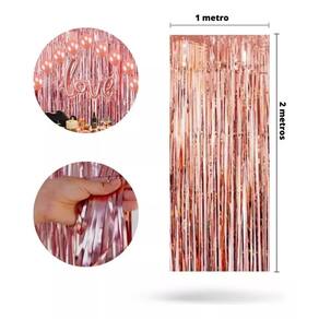 Cortina Metalizada Franja Metálica para Decoração de Festas Rose Gold 1mt Cortina Metalizada Franja Metálica para Decoração de Festas Rose Gold 1mt