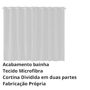Cortina confeccionada em tecido de microfibra um material conhecido por sua suavidade, o acabamento com bainha confere ajuda a manter o tecido em perfeitas condições ao longo do tempo, garantindo que a cortina permaneça bonita. A inclusão de ilhós para varão de 2 metros torna a instalação da cortina mais fácil. Os ilhós permitem que a cortina seja pendurada de forma suave e deslizante no varão, o que é conveniente tanto para abrir e fechar a cortina quanto para ajustar a iluminação do ambiente de acordo com suas preferências. A praticidade é uma característica marcante desta cortina. Além da facilidade de instalação, a microfibra é um material de baixa manutenção.Parte superior do formulário