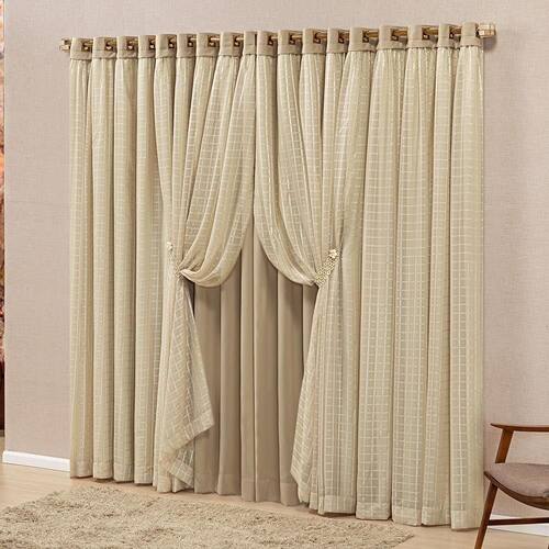 Além do forro blackout, a cortina também conta com o voil xadrez, que adiciona um toque de elegância e sofisticação ao ambiente. O design xadrez traz um charme especial, conferindo um visual único e contemporâneo.